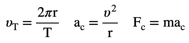 The diagram below shows a ball moving in a circle. Draw and label the radius, tangential velocity, centripetal acceleration, and centripetal force vectors on the ball.