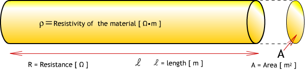 The resistivity is a property of a material that affects its resistance. It exact values varies with the materials being used, e.g. gold,silver, iron, etc. The resistivity is defined for various materials listed below. (Many more materials can be found on the web, Google it.)