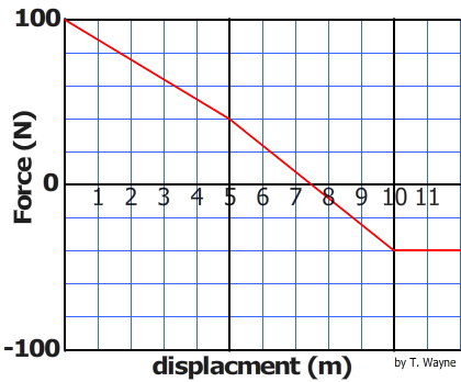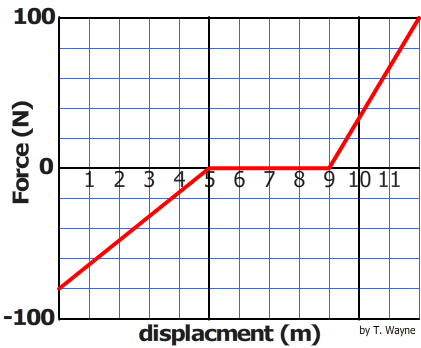 Which 3 meter interval does the greatest amount of work? Take the absoulte value of the work when comparing the numbers.